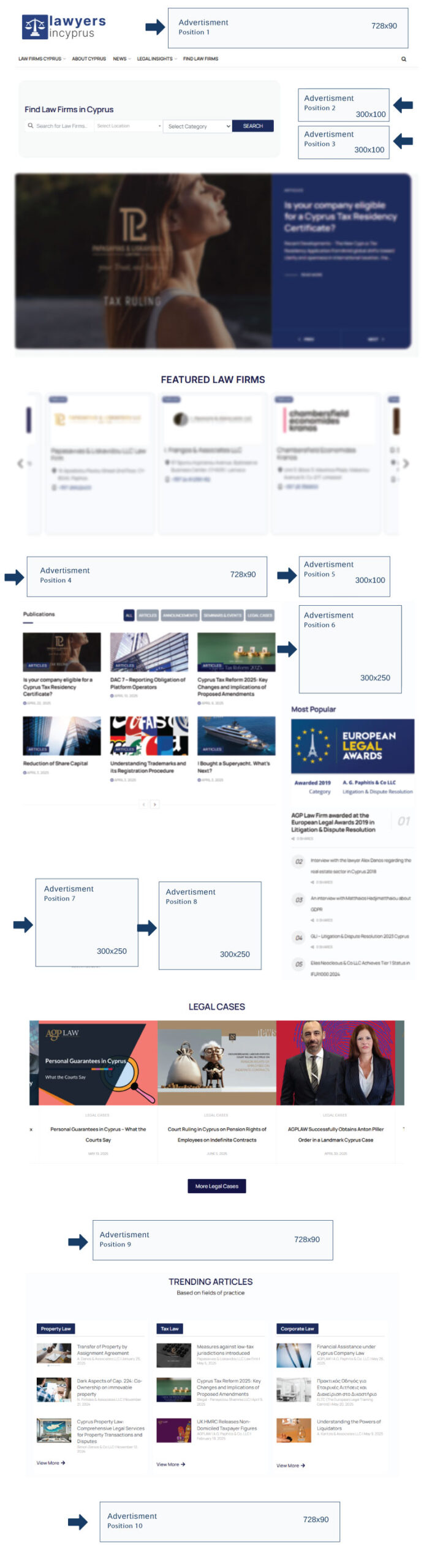 Our portal consistently ranks on the first page of Google for a wide range of targeted legal-related keywords and key phrases, enhancing our visibility and attracting potential clients.